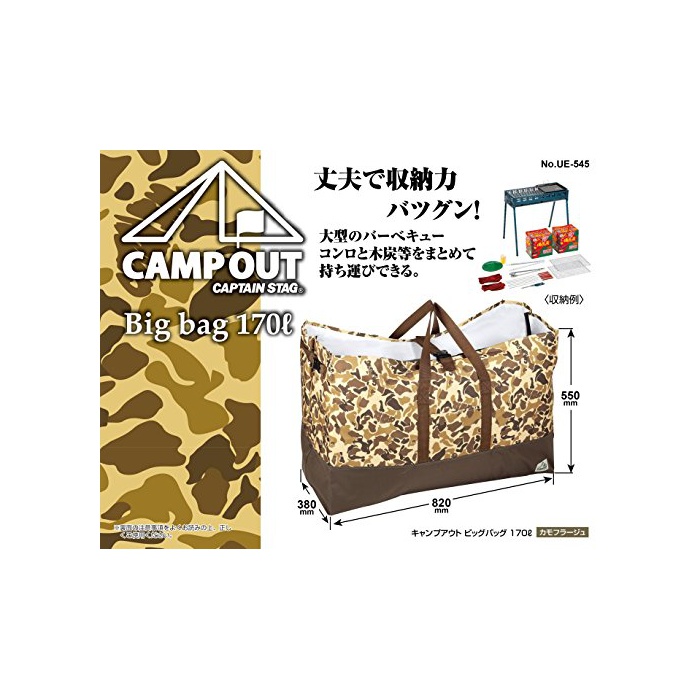 원본상품명: キャプテンスタッグ トト バッグ キャンプアウトシリズ カモフラジュ柄 大型納 Lサイズ 170L UE-545