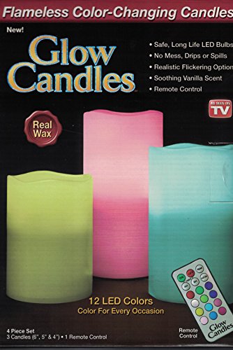 Glow Candles Flameless Color Changing Pillars (Set of 3) | As Seen On TV | Made from Real Wax