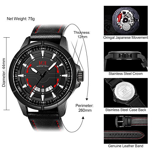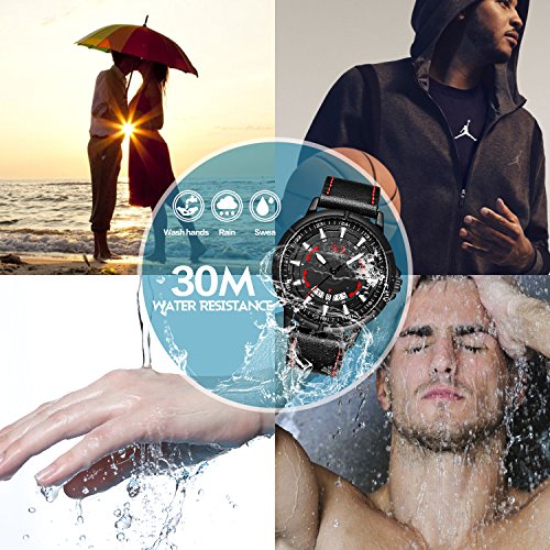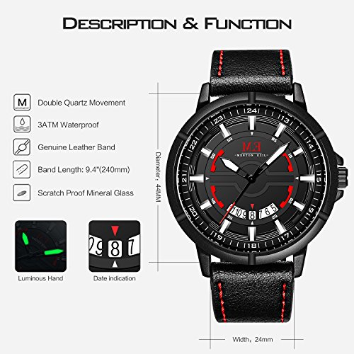 4. Comfortable Adjustable Leather Band Strap: High quality black genuine leather band with Buckle provide comfortable wearing experience and convenient to adjust the wirst, fits for all wrist sizes.
