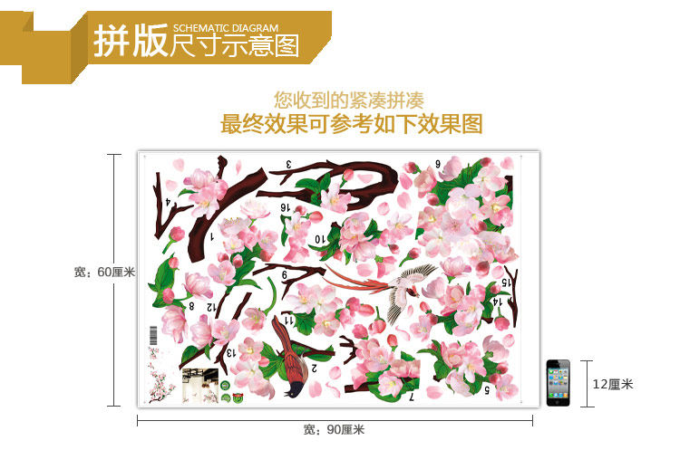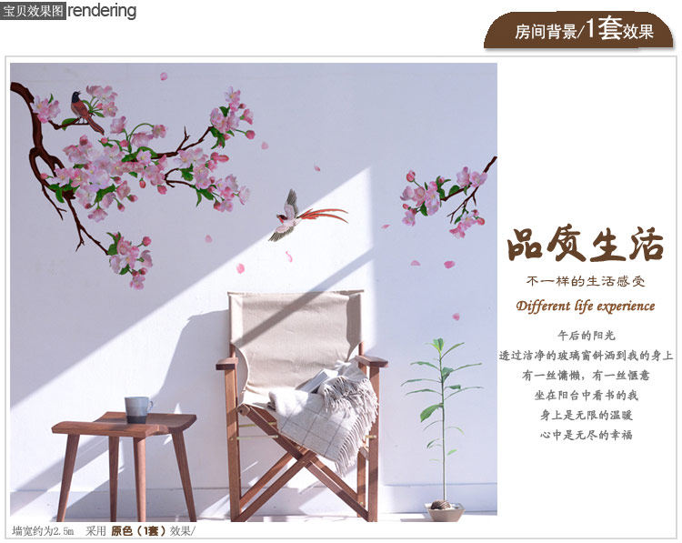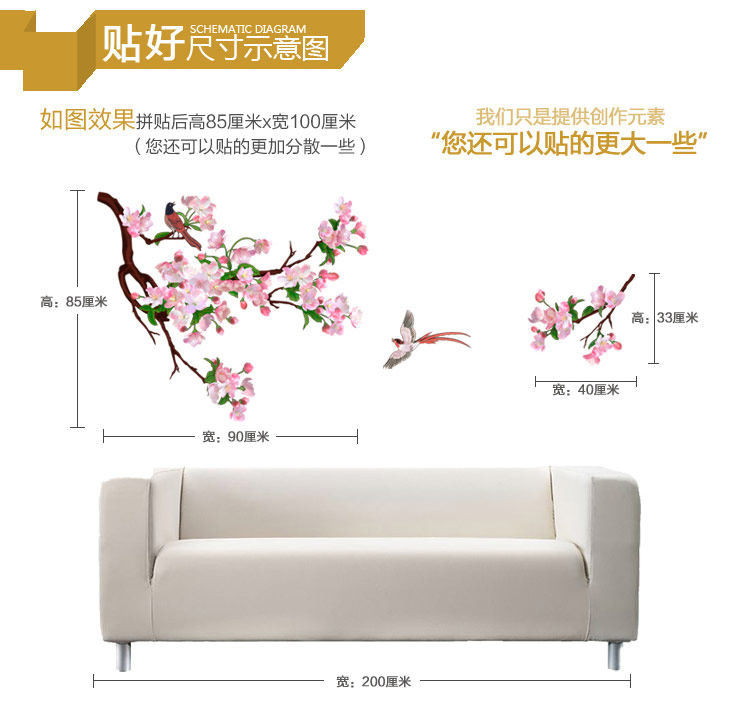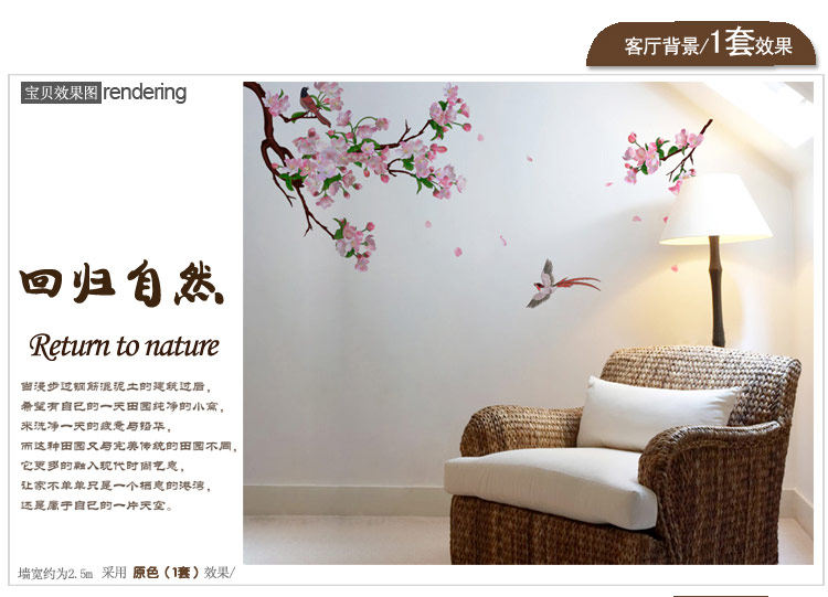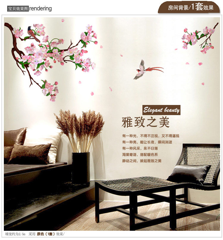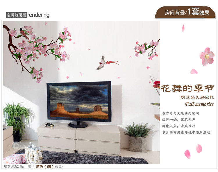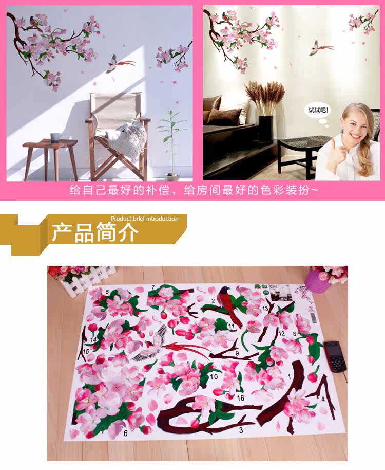 电视背景墙贴纸贴画现代大型树枝贴花影视墙壁装饰客厅艺术海棠花