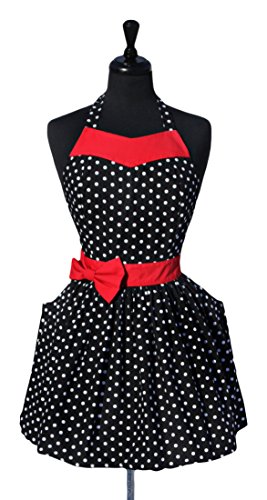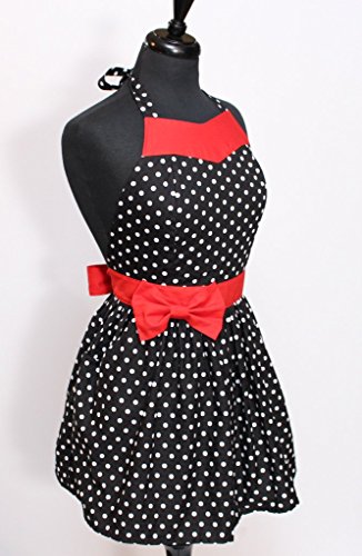 Sugar Baby Aprons 50s Style Party Girl Polka Dot Apron with Red Sash, One Size