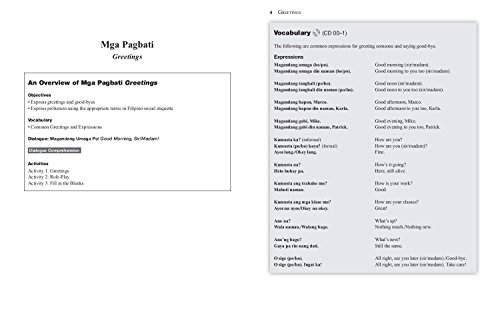 - An accompanying audio CD with listening activities to reinforce Tagalog learning is also included with the book.