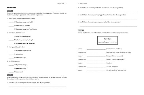 - Three Active Learning Activities follow the dialogue and dialogue comprehension in each lesson and ask students to employ the lesson's new Tagalog vocabulary.