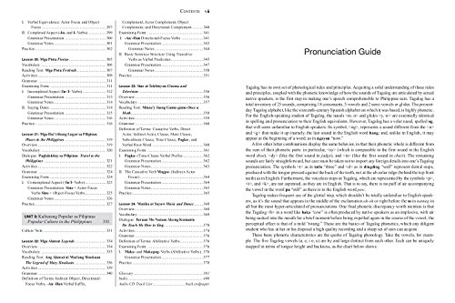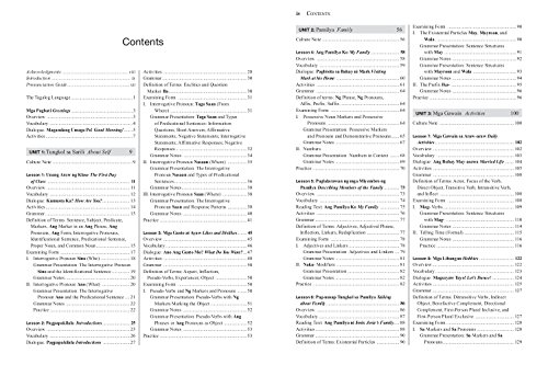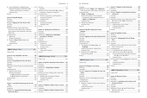 - Cultural Notes at the beginning of each unit offering explanations of social, economic and historical aspects of Filipino society.