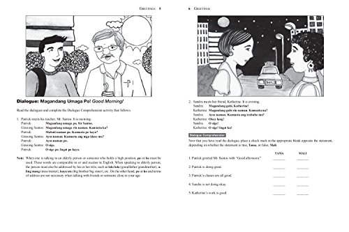 - Reading and Reading Comprehension which are presented mostly in the form of Tagalog language dialogues, are designed to expose the students to real-life conversations as might be had by native Filipino speakers.