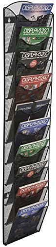 Displays2go Wall Mount Literature Rack Organizer, 10 Pockets, Black Steel Mesh (MSHWL10BK)