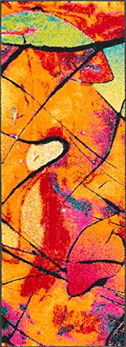 This dynamic runner design evokes lyricism and is an intelligent choice for any décor. Colorful and inviting, it will create an imaginative atmosphere to your favorite room. Made of soft 100% polypropylene fibers that are plush while also being stain-resistant and resilient. Magenta, cerulean blue, cadmium yellow, chroma green, electric orange, ink black, oxide red, and chalk white.Feature