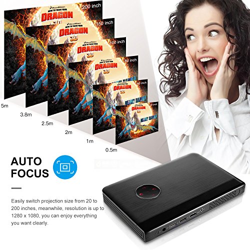 Projector LESHP 1080P Projector Cinema Screenless Computer Video Projector Wifi Bluetooth 200 Inch Screen Auto Focus Screenless Windows 10 Systems Projector For Home Theater Movie Entertainment Games