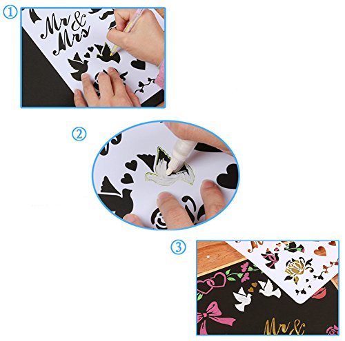 Creative hollow design, consist of figures, alphabet, geometry pattern, symbols, butterfly and rose shapes and so on,you will be fond of creating new amazing picture and have a good imagination and creativity.Due to item design and manufacturing reason, some of the stencils pattern maybe small, please use the fine pen to delineate