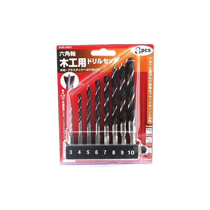 원본상품명: E-Value 六角軸木工用ドリルセット8本セット EDS-3HEX