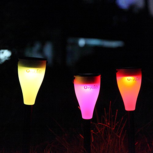 Color Changing Solar Lights, OxyLED LED Solar Powered Outdoor Garden Stake Light, LED Decorative Light for Garden, Patio, Backyard, Path, Lawn (3 Pack)