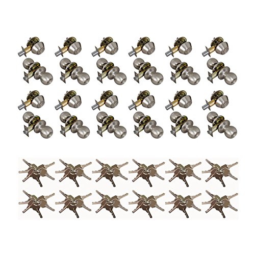 Grip Tight Tools ED06-12 Combo Entry Lock Set Door Knob with Double Cylinder Deadbolt Keyed Alike Keyway (Set of 12), Silver, 12 Piece