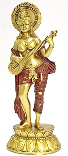 Golden Saraswati Statues Figurines Sculptures Bali Tibet Hindu Thai Buddha 7 Inches Statues