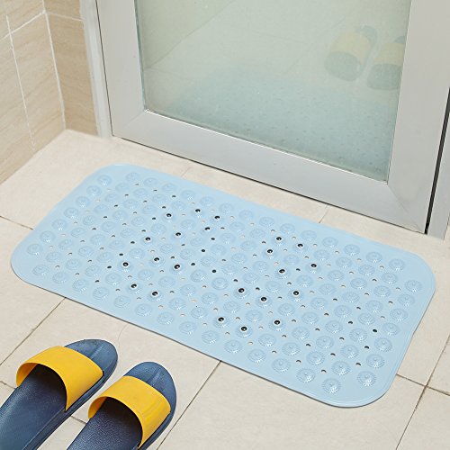 [Upgrad]Non-slip Bath Mats, Upintek Shower Mat Drain Holes Massage Magnets Washable Bath Mat 28x14inches(Blue)