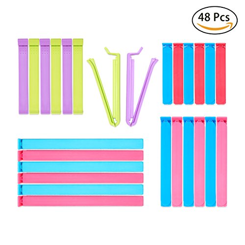 48 pcs Plastic Sealing Clips for Food and Snack Bag Colorful Food Clips Bag Sealing Clips For Kitchen (7.08 in, 5 in, 4.34 in, 3.54 in)