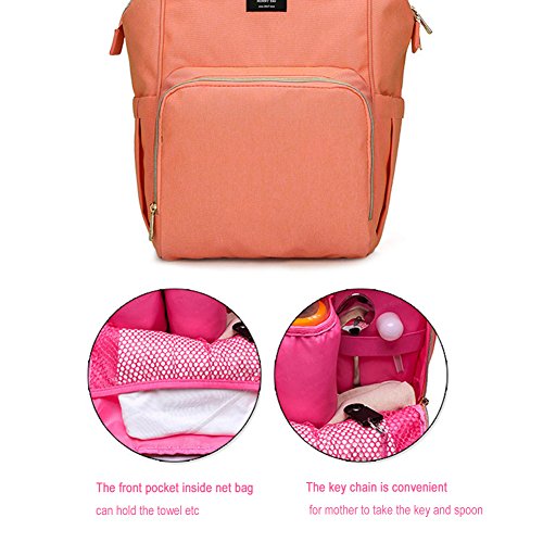 LARGE CAPACITY: Smart organizer system features separate storage pockets, you can take in the milk bottle, water bottle, baby clothes, baby diaper, towel so on in different separate pockets.