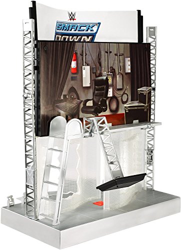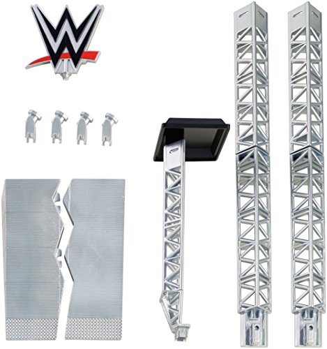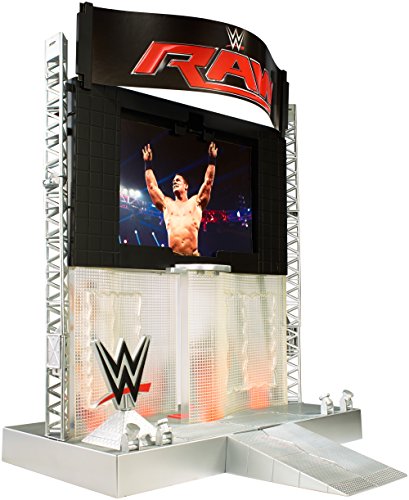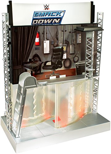 Re-create your favorite WWE Superstar entrances! Set the stage for awesome action, with a 2-in-1 WWE play set with flashing lights. This giant entrance stage was made for giving your 6-inch Superstar figures the introduction to the ring they deserve. Watch the lights flash just like in a real match as you bring your figures into the "arena," set them on the stage and slam your opponent through the breakaway panels for authentic Superstar mayhem! Or start the action backstage where WWE Superstars can "climb" the scaffolding and knock it down for instant drama. It's like having two play sets in one! This amazing play set also includes an innovative app that lets kids interact with all the WWE action. Each sold separately.Feature