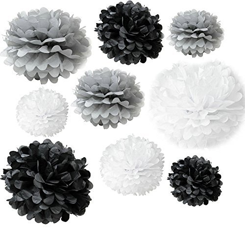 Somnr® Set of 18PCS Mixed Sizes White Grey Black Tissue Paper Pom Poms Wedding Bridal Shower Christmas Party Decoration
