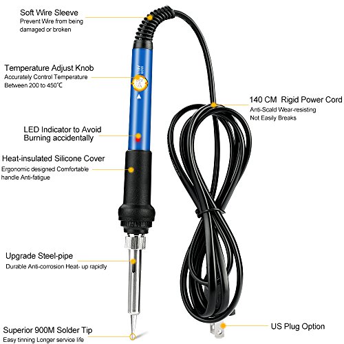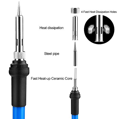 - 【FAST HEAT UP & EFFICIENCY DISSPATION】60W upgraded ceramic heater chip. Advanced Chip Fixed Resistor while others use the normal Color ring resistance, heat up rapidly(2 minutes or so). High-quality stainless steel-pipe with 4 Fast Heat Dissipation Holes , which allow the iron kit has an excellent radiating and protect the heater carefully