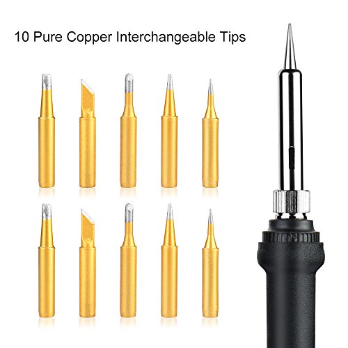 - 【10 PURE COPPER SOLDING TIPS】 Kit comes with Soldering Iron(with 1.4m Copper Power Cable), Solder Wire, Stand, Rosin.Most importantly, we provide 10 multiple copper soldering tips which is anti-corrosion,anti-rust. Concentrated solder joint, Smooth surface , Extra longer using life. Much better than other tips on the market