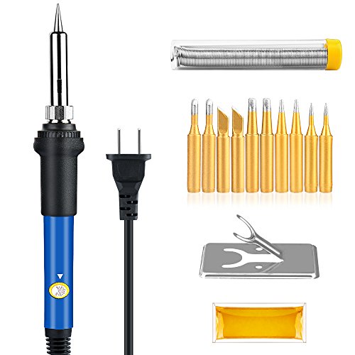 EZfull Soldering Iron Welding Kit 10pcs Soldering Iron Tips 60W 110V Adjustable Temperature Welding Soldering Irons, 1pcs Tin Wire Tube ,Rosin, Stand for Electronic Home Use Hobbyists DIY Solders