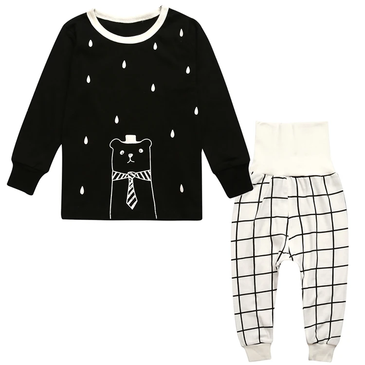 [5スタイル/5サイズ] 100%綿プリント子供パジャマセットパジャマスーツカジュアルボーイズガールズキッズホーム服oネックパジャマスーツ