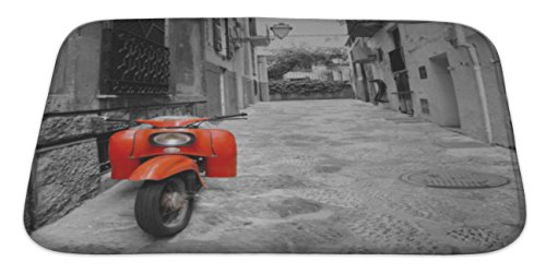 Gear New No Slip Microfiber Memory Foam Mediterranean Street with Old Retro Red Scooter in Mallorca Bath Rug Mat, 34" X 21"
