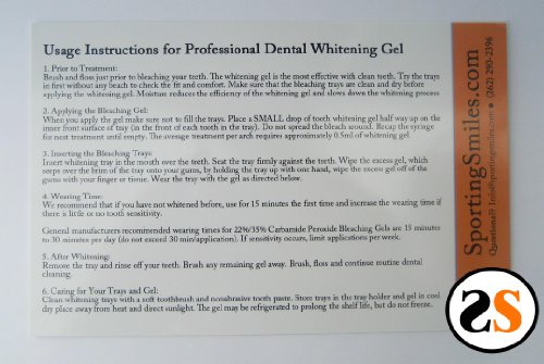 -. Feature : Professional Strength FDA approved 35% Carbamide Peroxide gel / Over 20 Whitening Applications / Thick, High-Viscosity Formula to prevent moving in trays / HUGE 10ml Syringes / Written Instructions and Shade Guide Included