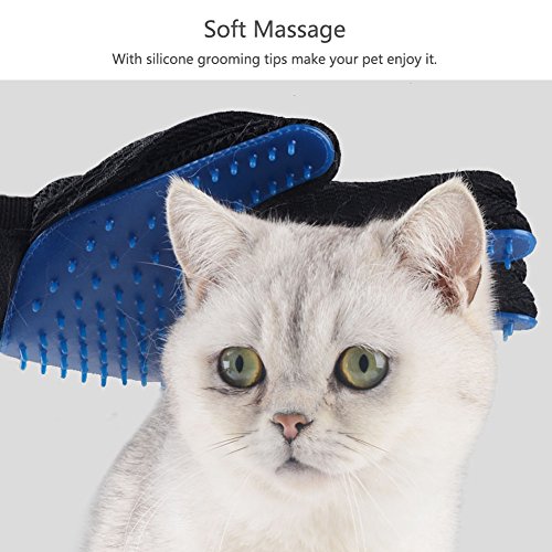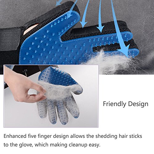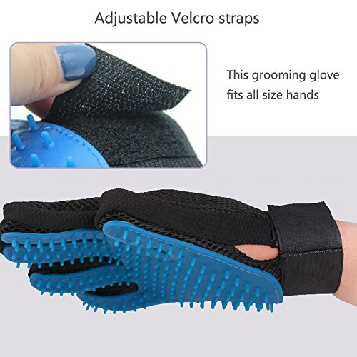 ❤ Friendly Design - Adjustable Velcro straps ensure that this grooming glove fits all size hands. Enhanced five finger design allows the shedding hair sticks to the glove, which making cleanup easy.