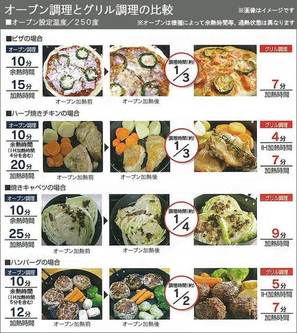 グリルだから高温でムラなく火が通り、旨味を凝縮します。高火力で石釜風。オーブンよりも短時間で調理が可能です。 |