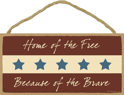 (SJT13161) Home Of The Free Because Of The Brave 5" x 10" Wood Plaque Sign