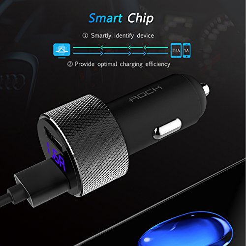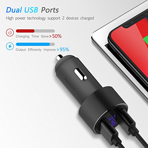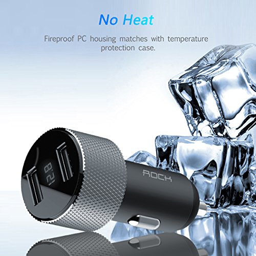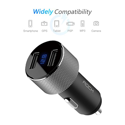 -. Title : Car Charger, Rock Fast Charge Aluminum alloy Dual USB 3.4A Car Adapter LED Display Car Voltage Detector Flush Fit for iPhone X/8/7/6s/Plus, iPad Air 2/mini 3, Galaxy S9/S8/S7 Edge LG V10/V20