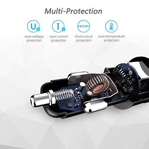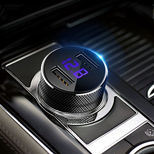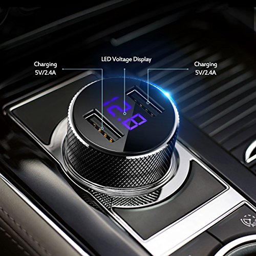 -. Feature : [LED Voltage Display] Monitories the vehicle's battery and electrical system automatically and indicating the car voltage in the screen, you will know the health of battery while driving. Please pay attention when the voltage is under 12.8V. The upgrade display, with soft LED blue light without glare, would not interfere with your sight. / [Efficient Charging] Charge two devices simultaneously at full speed with 2.4A in each USB port. With a total voltage of 3.4A, the charging speed is up to 40% faster than conventional chargers and works with all USB-powered devices like iPhone 8/ 8 Plus/ X/ 7/ 6S, Samsung Galaxy S9/ S9+/ S8/ S8+/ S7, iPad, android tablets, power bank, video games controllers, sports watch, cameras, etc. / [Stylish and Elegant] The advanced full aluminum alloy body with a scratch resistance technology, keeps it sturdy and protects it against drops and scratches. High quality aluminum material let your car charger always looking like new. / [Safety Guarantee] Its multiple protection against over-current, overcharging, overheating and high temperature will guard the safety of your devices. / [Universal Compatibility] Universal compatible with any Android and Apple mobile devices,including Apple iPhone X, 8/8 Plus, 7/7 Plus, 6/6s, 6/6s Plus, SE/5s/5/5c, Samsung Galaxy S7/S7 Edge/S6/S6Edge+/S6 active,S5/S4,Note5/4/3,Nexus7/6/5/4,Nokia,HTC,Motorola,LG,SONY,and other smartphones and tablets, GPS units, iPods, MP3 players and more