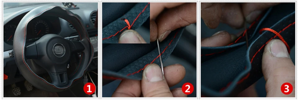 3.The second needle passes through the outer side of the steering wheel, from the outside to the inside.
