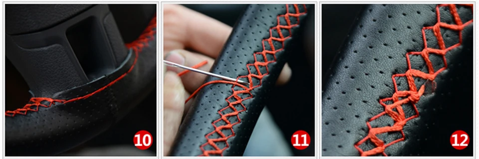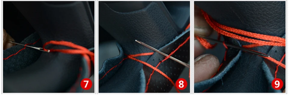 9.This step with the second needle, through the steering wheel cover edge.