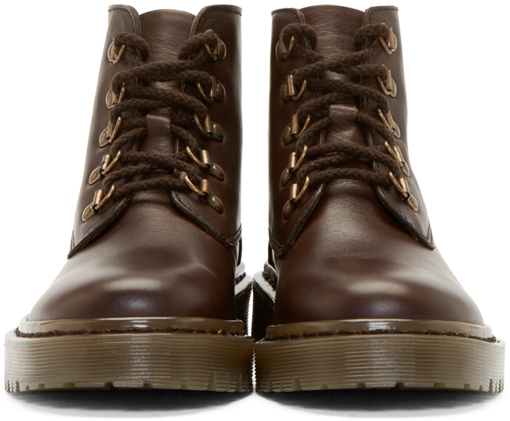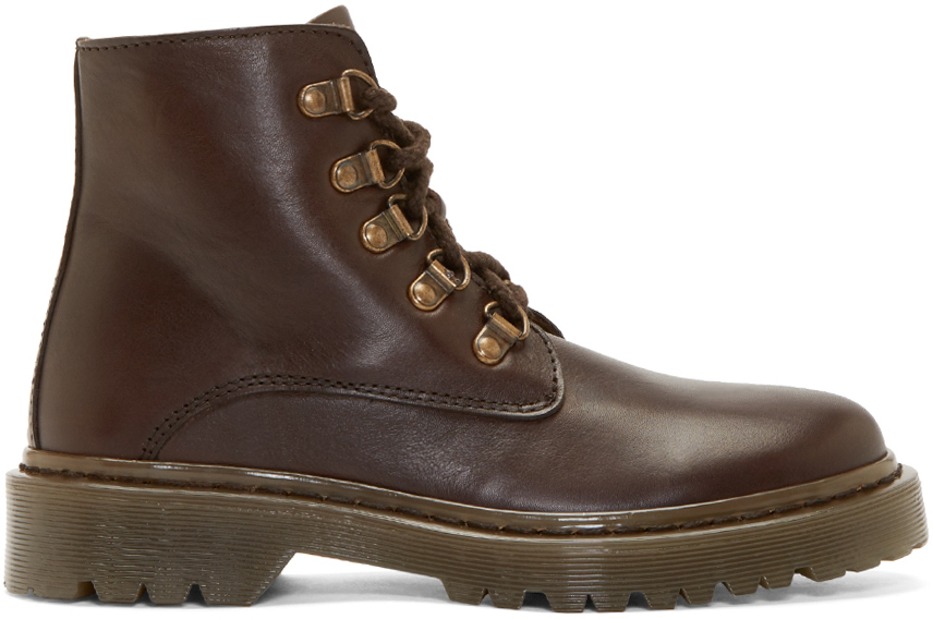 Ankle-high leather boots in chocolate brown. Round toe. Tonal lace-up closure with lace-hooks. Tonal stitching and sole. Leather. Made in Portugal.