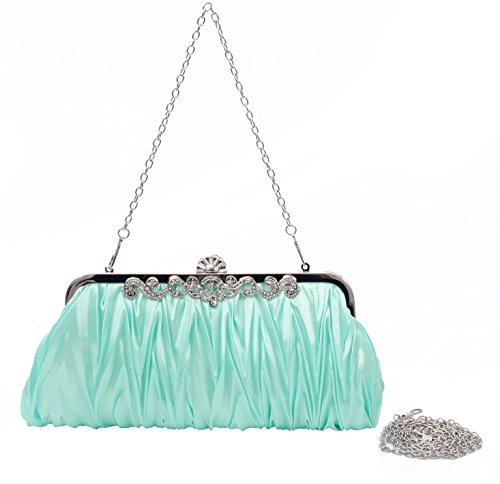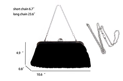 You may concern: ✪ What's the material? ★ Silk satin, solid hardware. ✪ How to open it? ★ Grab the entire clasp and tilt backwards.✪ What will fit in it? ★ Large enough to fit essentials, like iPhone 7P, small battery charger a pack of kleenex, lipstick, cards and keys. ✪ In which occasion can I use this purse? ★ Since it's a decade classic style, you can carry it to any formal occasion, celebration, prom, ball, wedding party and so on. You can all give it as a gift to your daughter, mother, girlfriends, relatives. ✪ How to carry? ★ Three options to carry, you can take it by hand or shorter chain, carry it over the shoulder by the longer chain. Caution: the clasp on the chain may loosen, the gem may come off if you have a hot glue gun you can put it back on. If you hit the 0.1% chance to meet the small chain broke/pitting on the metal/the ball closure fell off. Please feel free to contact us for support.We're always responsible for a customer like you once you purchased from us. Click Shop Name 『PULAMA』 to Find More Fancy Items!Feature