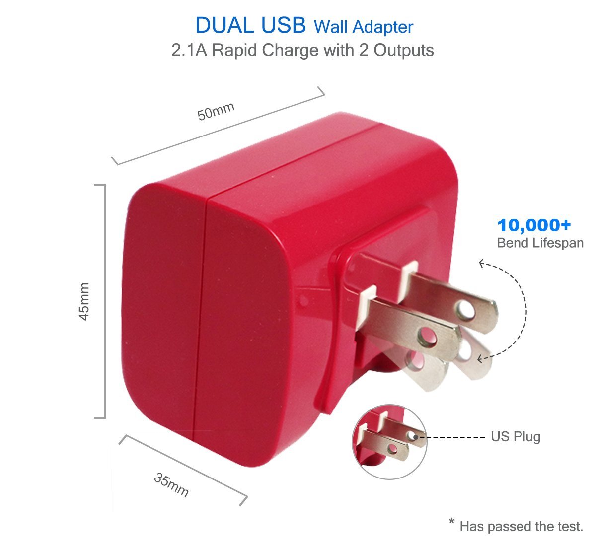 UL certified: This charger has overheat, overcurrent, overcharge security protection function, it meets strict security standards of Underwriters Laboratories and maintains excellent performance and reliability.