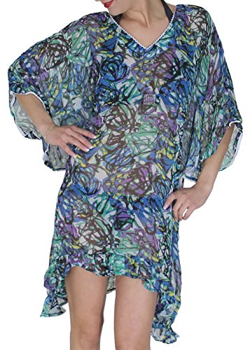 -. Title : La Leela LIGHTWEIGHT CHIFFON Abstract Bikini WOMEN TUNIC Swimsuit Cover up Green