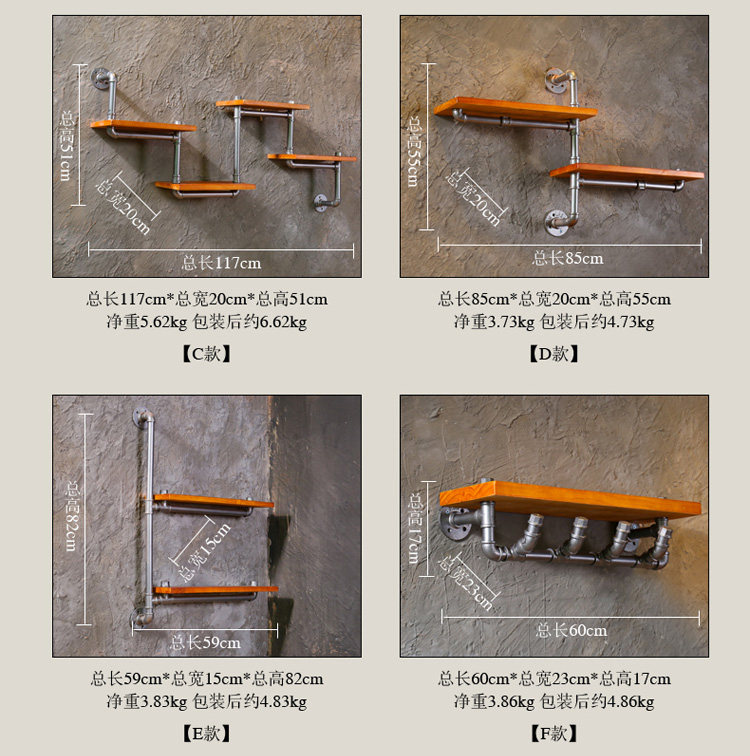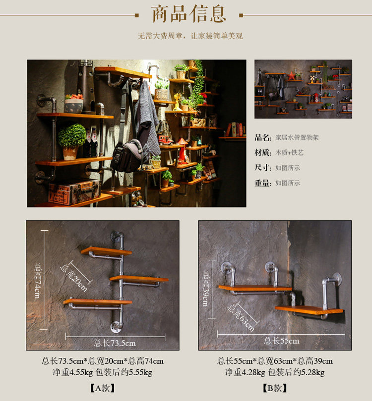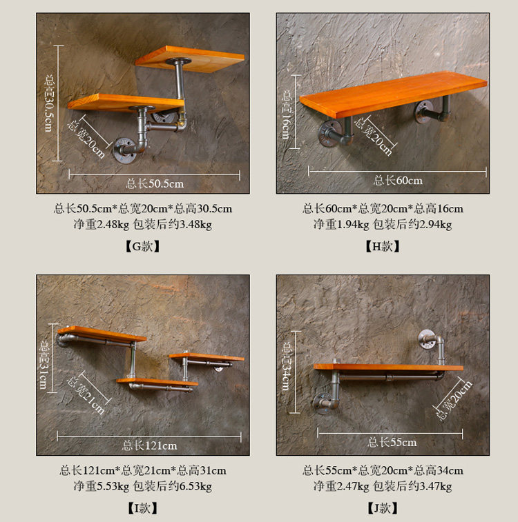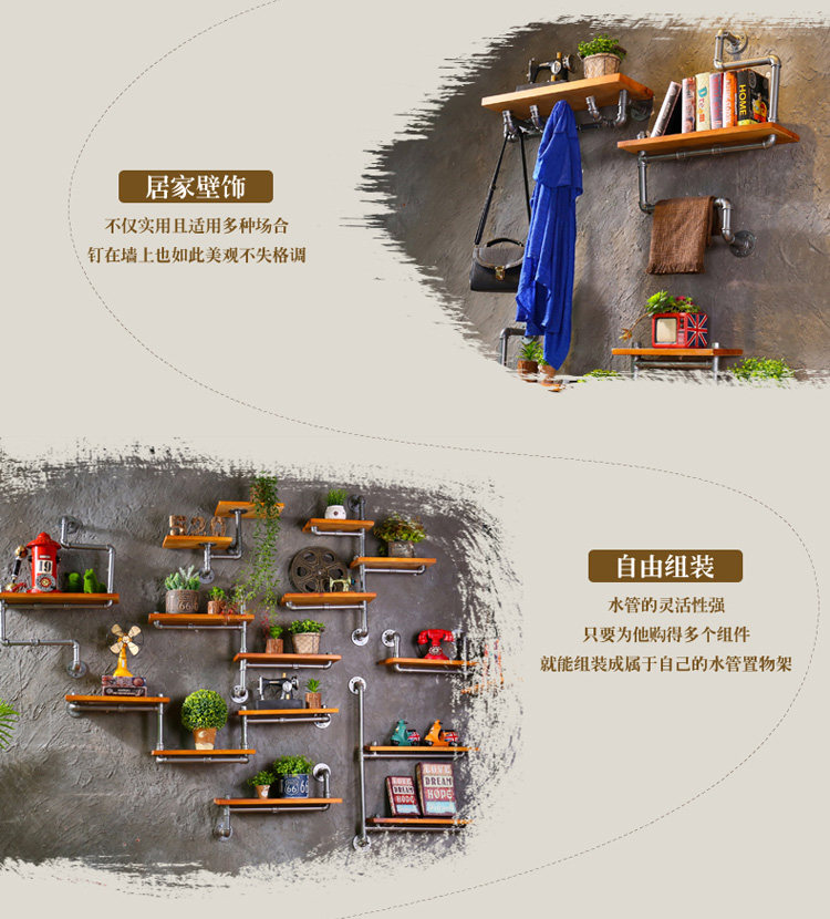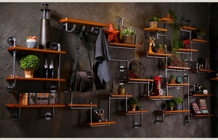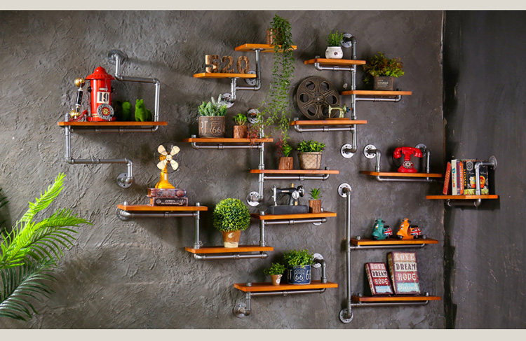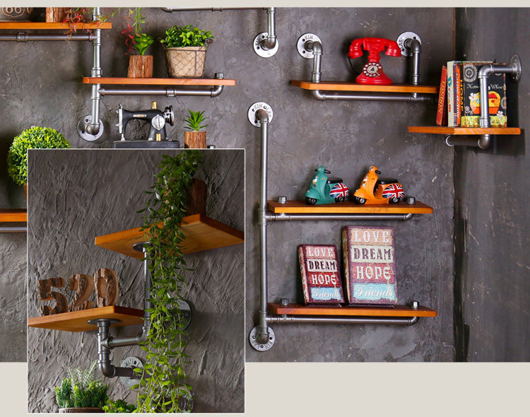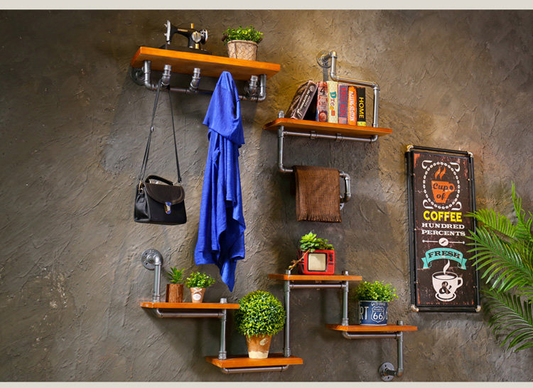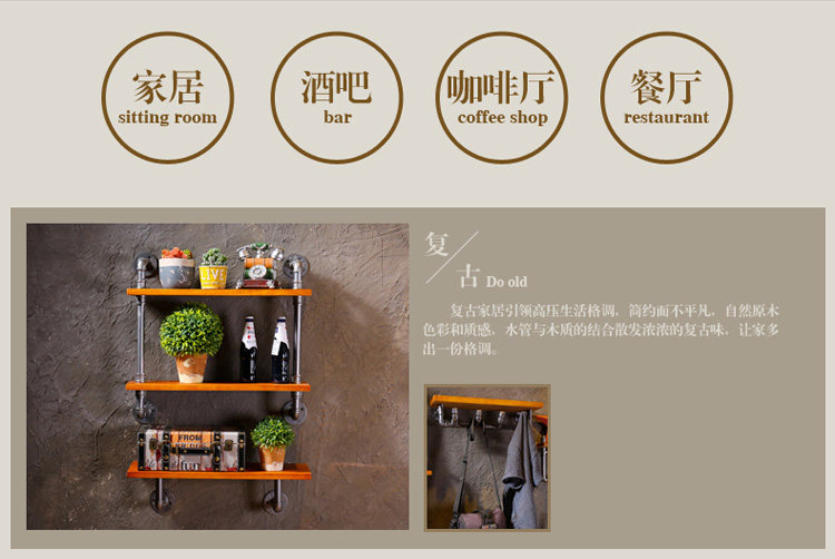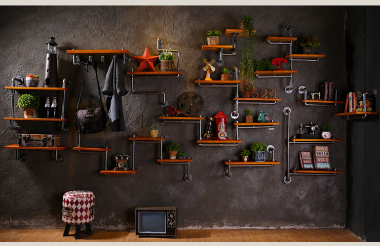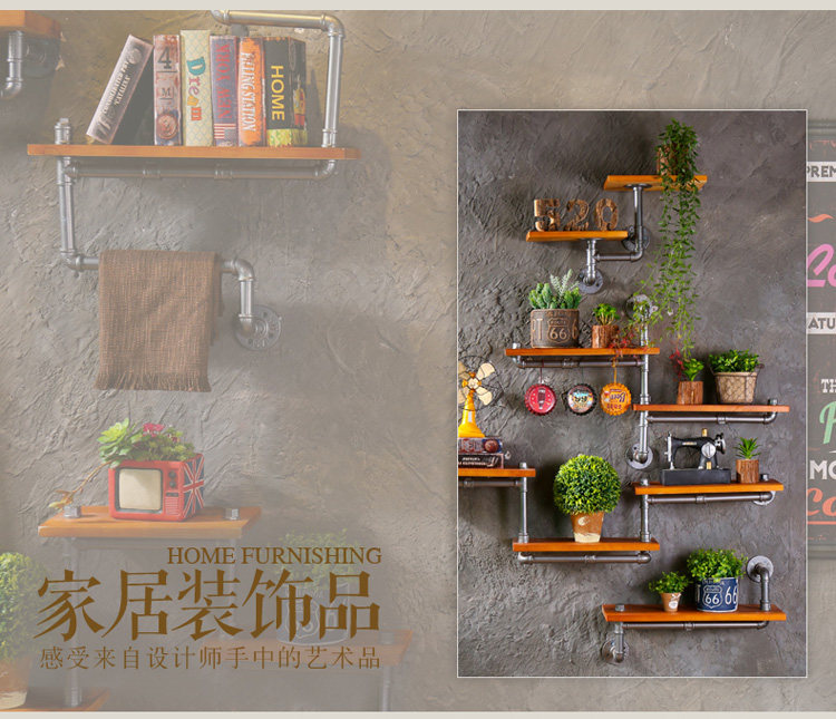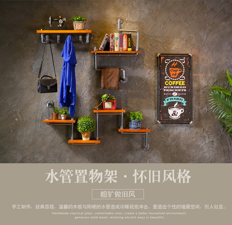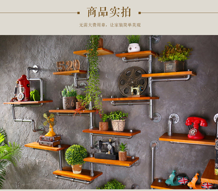 复古创意工业风餐厅酒吧店铺墙面装饰品置物架隔板服装店墙上挂件