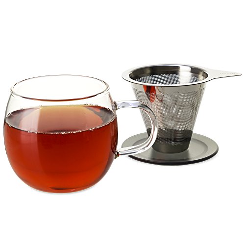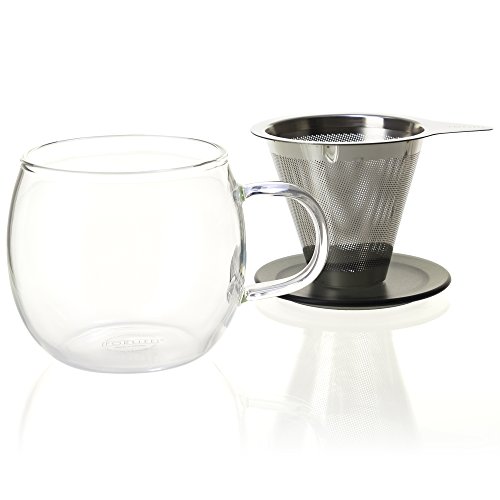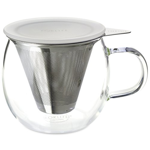 FORLIFE Lucidity Glass Brew-in-Cup with Stainless Infuser and Lid, 12-Ounce/355ml, Frost