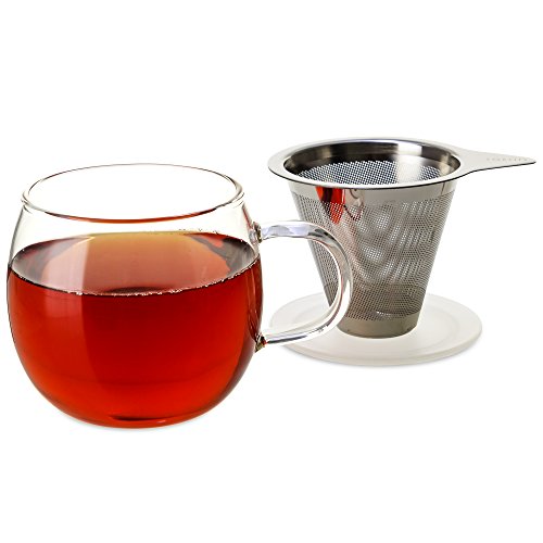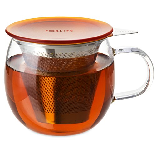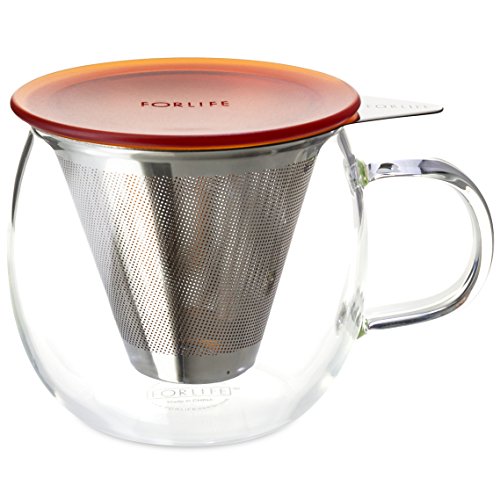 FORLIFE Lucidity Glass Brew-in-Cup with Stainless Infuser and Lid, 12-Ounce/355ml, Amber