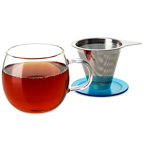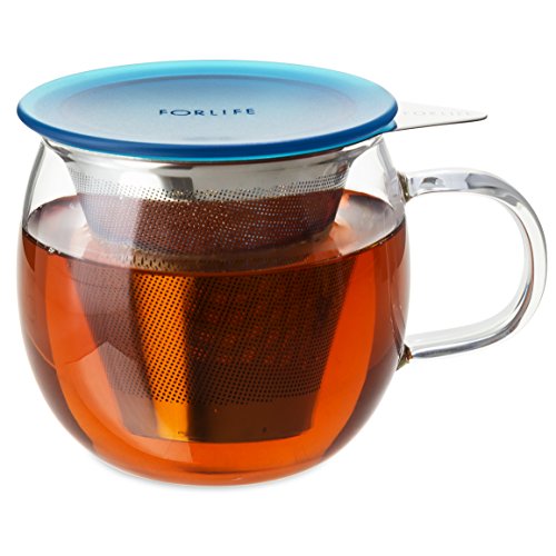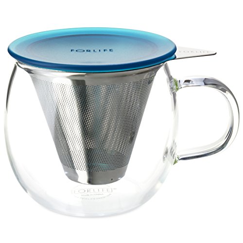 FORLIFE Lucidity Glass Brew-in-Cup with Stainless Infuser and Lid, 12-Ounce/355ml, Teal