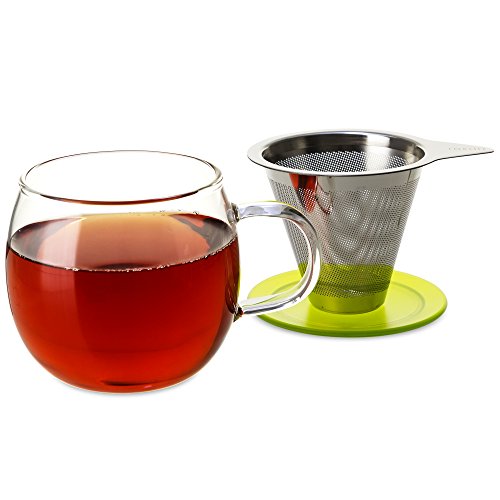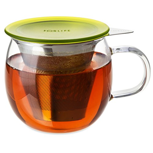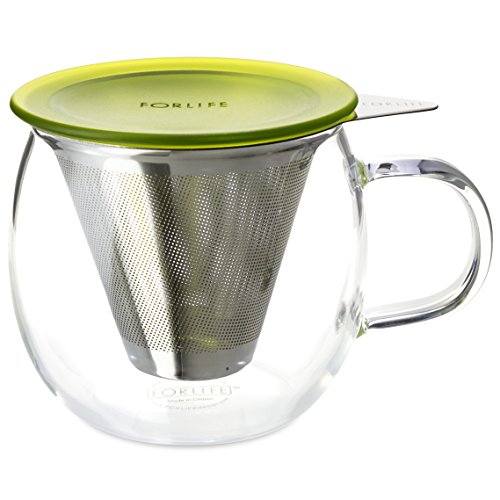 FORLIFE Lucidity Glass Brew-in-Cup with Stainless Infuser and Lid, 12-Ounce/355ml, Peridot