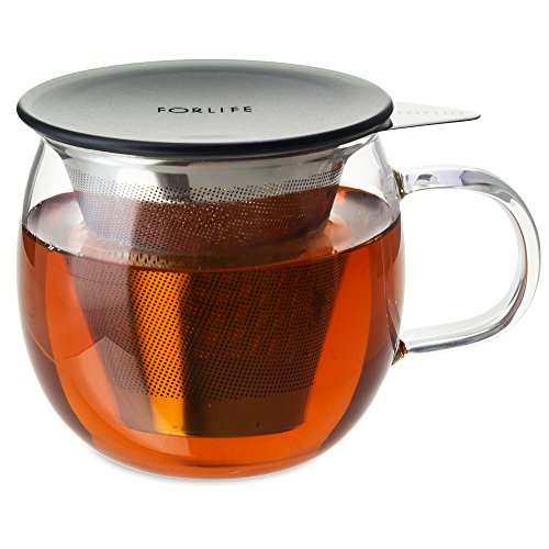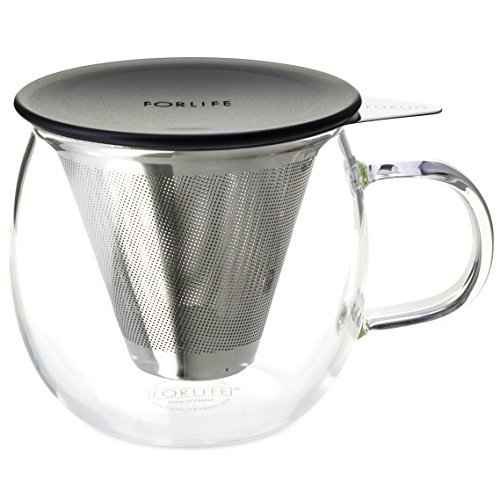 FORLIFE Lucidity Glass Brew-in-Cup with Stainless Infuser and Lid, 12-Ounce/355ml, Charcoal