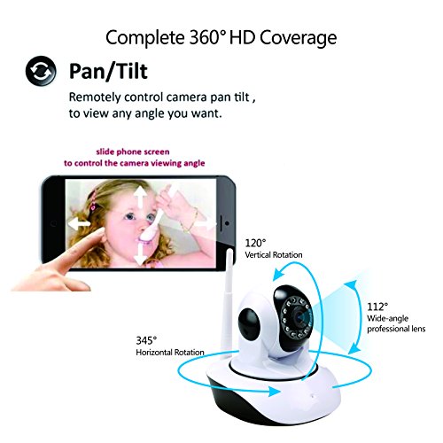 -. Feature : Wireless network connection. No complicated wiring. Automatically detect moving objects, trigger alarm and send alert emails to user. Please note: IP/Network only supported 2.4GHz Wireless. does not support 5ghz networks. / Two-way Audio communicate with family through your mobile device; support up to 4 users viewing video simultaneously; / HD Infrared Night Vision, Automatically turn on in low light or in darkness, Record and Playback via local micro SD Card; / Supports remote viewing via iOS/Android mobile devices, Windows PC, Apple Mac system and web browsers; / Pan/Tilt Control Move the camera as you desired. Pan horizontally up to 340°, tilt vertically up to 120°.