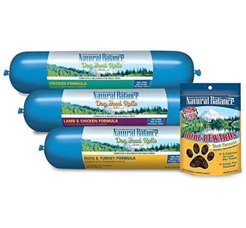 -. Feature : 1 - 3.5-pound Natural Balance Dog Food Roll, Lamb & Chicken Formula / 1 - 3.5-pound Natural Balance Dog Food Roll, Beef Formula / 1 - 3.5-pound Natural Balance Dog Food Roll, Duck & Turkey Formula / 1 bag of Natural Balance Mini Rewards Dog Treats, Duck Formula