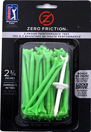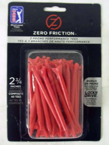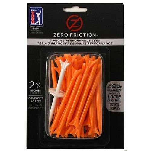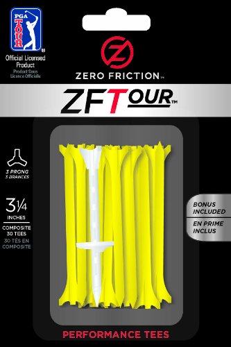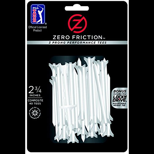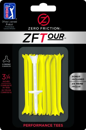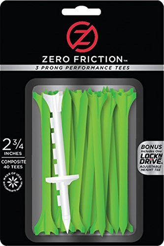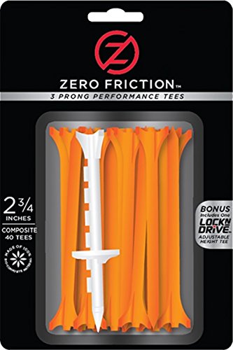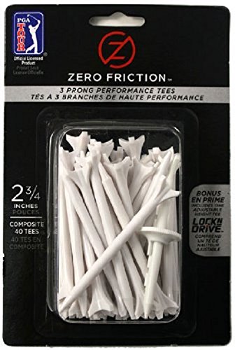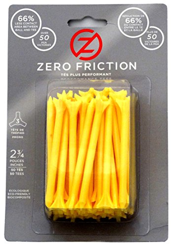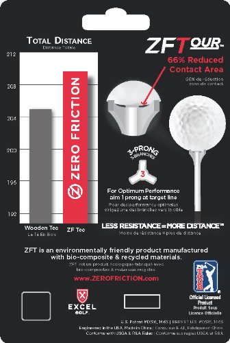 ReleaseDate : 2012-02-08 Studio : Zero Friction Publisher : Zero Friction Binding : Sports Product Description The Zero Friction Original 3-Prong Golf Tee has LESS RESISTANCE, which means MORE DISTANCE on the course. Our unique designed tee has a 3-prong top that significantly reduces the contact area between the golf ball and the tee, providing maximum distance and accuracy. Zero Friction has established itself as the No. 1 Performance Golf Tee on the PGA Tour with over 70 TOUR victories and more than 370 top-ten finishes. The Zero Friction Golf Tee is manufactured using bio-composite materials. for optimum performance, place one prong towards the target. 0
