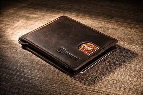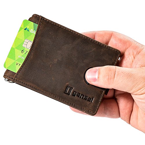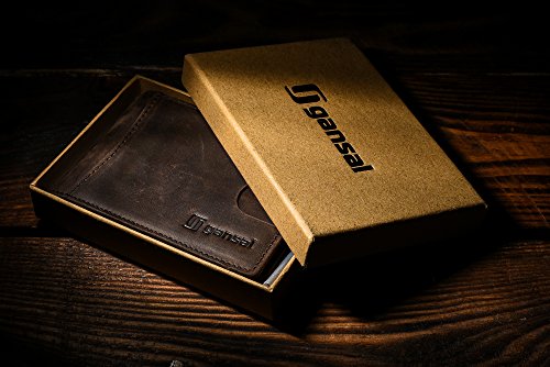 -. Feature : LIGHTWEIGHT AND COMPACT - this thin wallet from GANSAL combines a unique and classy look with extra durability and convenience. Produced from genuine Crazy Horse leather it provides the wearer with incredible comfort and also it is surP.R.Isingly spacious for its handy size! / PERFECT FRONT POCKET WALLET - the days of big, bulky and uncomfortable wallets that were deforming and stretching out your clothes are finally in the past! Our slim money clip will remain almost unnoticed even if you are wearing it in the front pocket of your pants or blazer. / CAPACIOUS AND FUNCTIONAL - despite its comfy and relatively small size this billfold is capable of holding up to eight cards, such as bank cards, ID's and driving licenses, insurance cards and various passes, etc. It's a wonderful way to safely keep all the important stuff and your cash in one place! / RFID BLOCKING - a special lining of this wallet will reduce the chance of the identity theft. The data stored on your cards is reliably protected. / WONDERFUL GIFT - this cardholder is a great way to pleasantly surP.R.Ise someone you love. We offer our product in a presentable gift box. All you have to do is simply wrap it in the gift paper. It is a beautiful present for men.