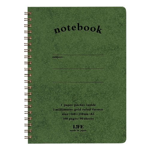 LIFE Note book pocket with A5 5mm Grid 90 Seets Green